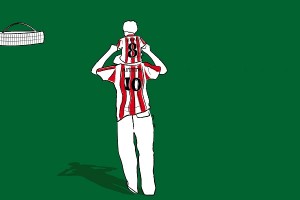 Ocurrió una tarde de comienzos de la temporada pasada. Me dirigía al estadio junto a mi mujer. Era un domingo cualquiera. Recuerdo que ella estaba embarazada y que aquellos días apurábamos las noches hablando emocionados de cómo creíamos y querríamos que fuera nuestro esperado primer hijo, Oihan, quien pronto nacería. Serían las cinco menos poco, porque caminábamos deprisa, confundidos entre la marea rojiblanca de cada domingo. Al pasar junto al Miguel Ángel (es un bar), recordé un instante los días en que en ese mismo lugar aitite me presentaba a sus amigos como el futuro ’9′ del Athletic y cómo me orgullecía y sonrojaba al mismo tiempo escuchar aquello. Y en ese preciso momento aconteció lo mágico. De pronto, los que marchaban frente a nosotros se apartaron y se reveló la siguiente escena: un hombre caminaba con un niño de unos seis años a hombros. Ambos iban vestidos a juego, con la camiseta rojiblanca del Athletic. No vi sus caras, pero me hablaron sus espaldas. En la del niño lucía el número 8 y un nombre cualquiera. En la del hombre, el número 10, el número perfecto del jugador perfecto, brillaba bajo un arco escrito con la siguiente palabra escrita en mayúsculas: AITITE.